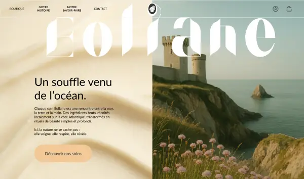 Création d’un branding immersif et d’un site e‑commerce pour Éoliane, jeune marque rochelaise de cosmétiques bio, afin de révéler son univers engagé, sensoriel et local, et d’étendre sa visibilité à l’échelle nationale.
